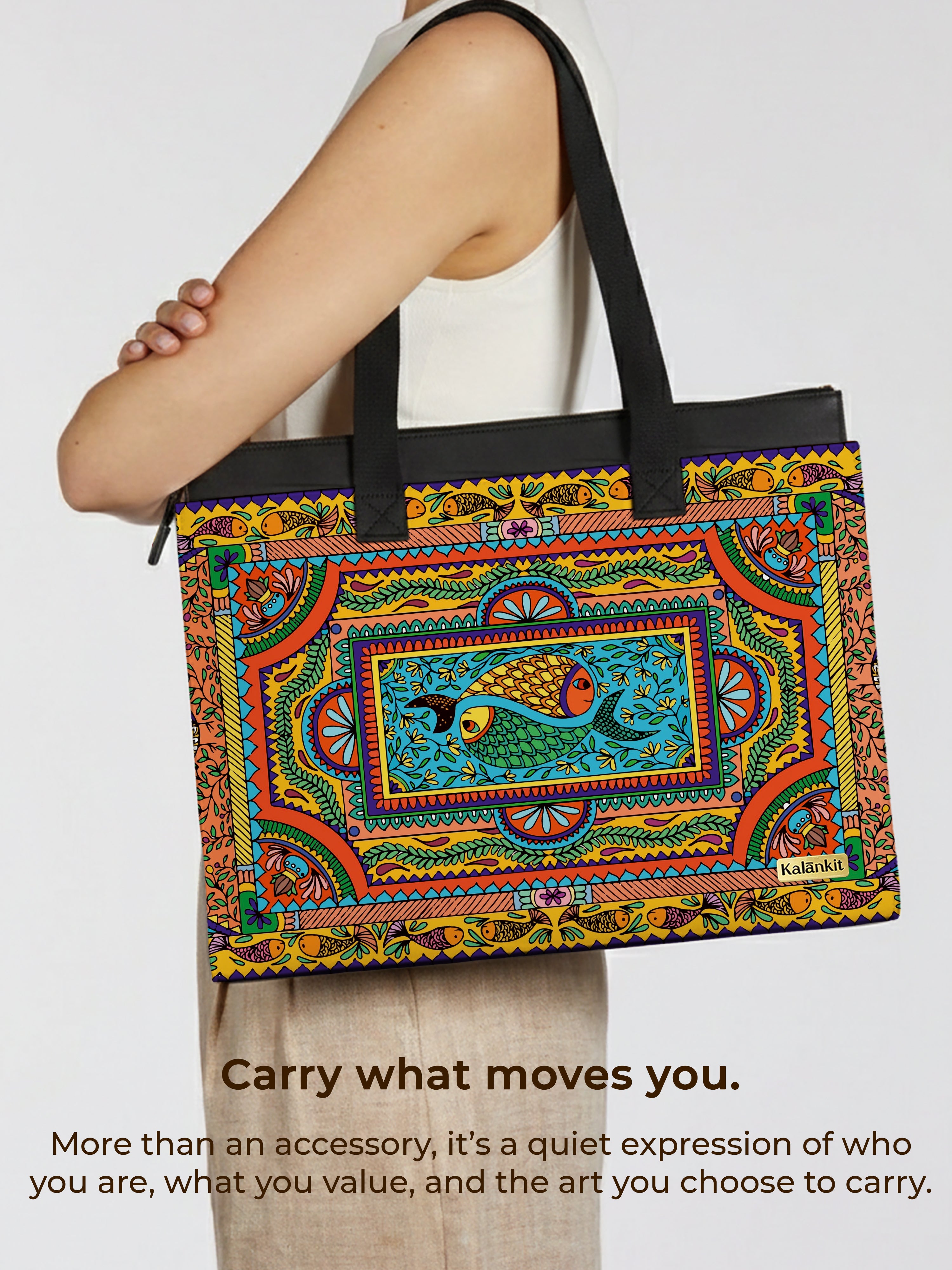 daily tote bag | Tradition in Motion ( Modern Madhubani )