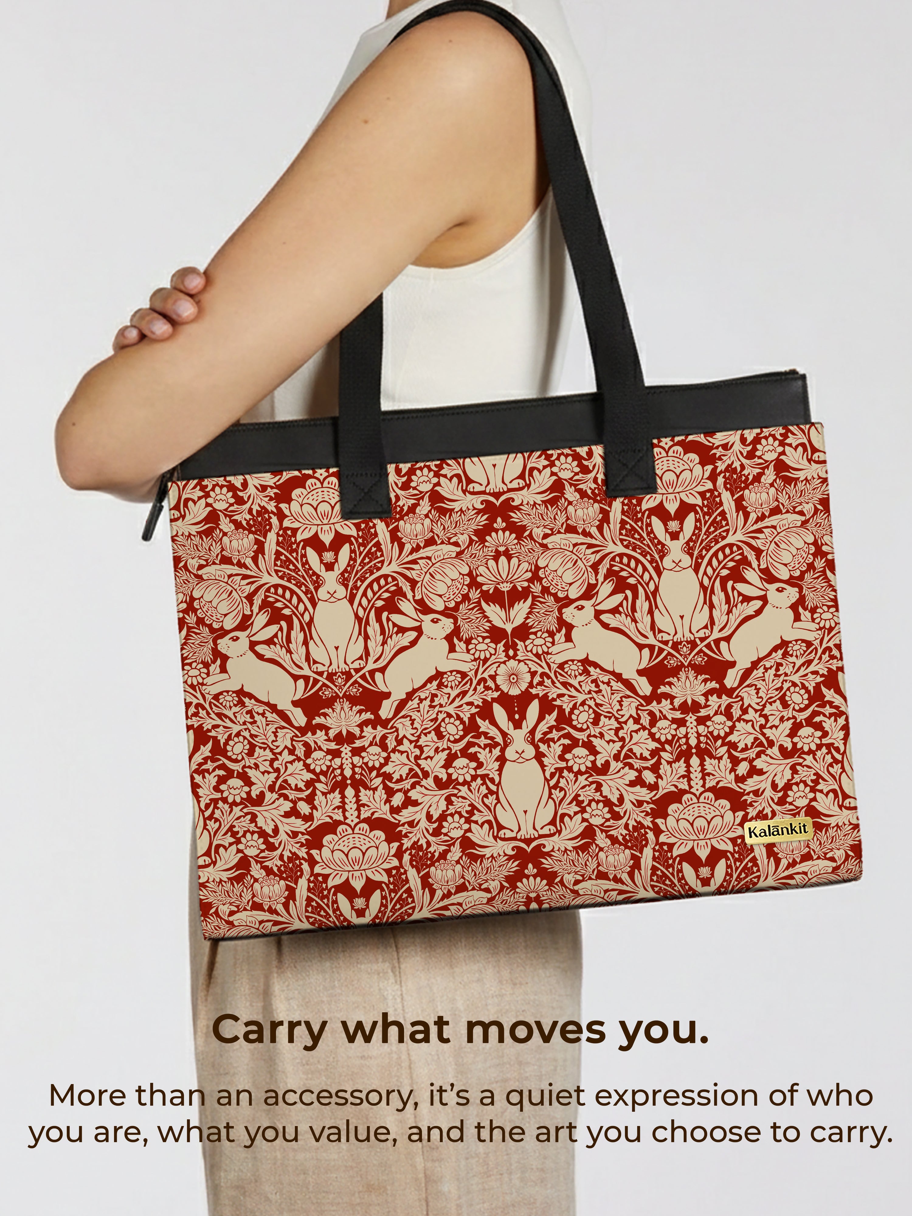 About the Artwork: Intricate hares bound in elegant symmetry—this damask-inspired motif weaves folkloric charm with playful grace, celebrating the quiet magic of woodland dwellers.
