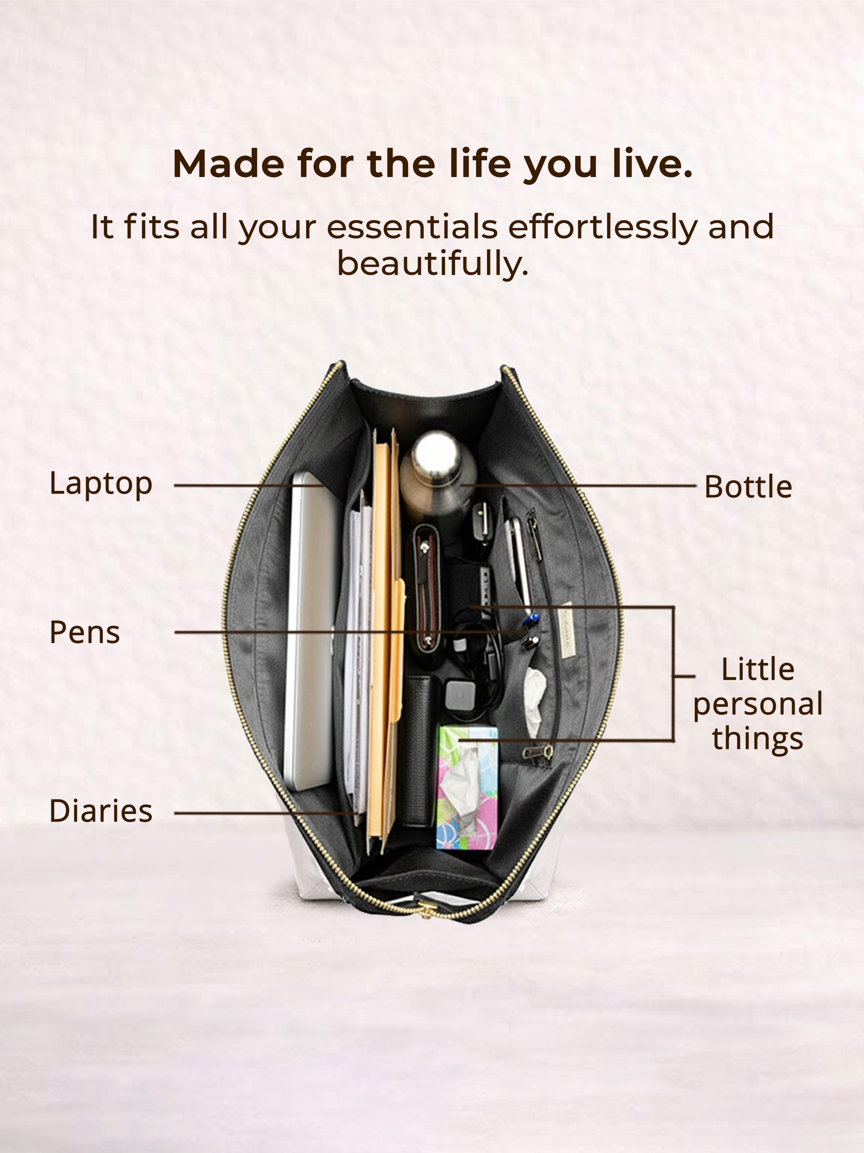 Introducing Kalankit Office Tote Bag for Women: Designed for modern work routines, this office bag for women combines practical storage with a clean, professional aesthetic. With a spacious structure measuring 41 x 11 x 34 cm, it offers ample room for daily essentials, making it an ideal tote bag for women office use and a reliable work bag for professional settings. The interior features a padded laptop sleeve to safely carry work devices, along with a dedicated bottle holder and organized compartments that help keep belongings neatly arranged throughout the day. Crafted from durable black canvas fabric, the bag is built for everyday use while maintaining a minimal, modern look suited for office environments. A secure zip closure keeps items protected during commutes, while comfortable handles allow effortless hand or shoulder carry. Lightweight yet structured, this stylish office bag fits seamlessly into daily work life, office commutes, and professional travel—making it a dependable everyday companion.