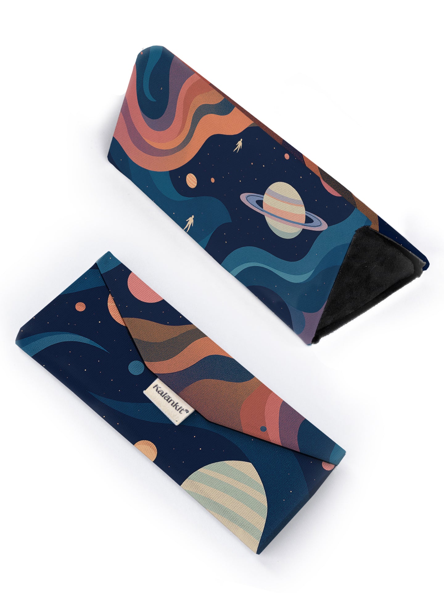 Introducing Kalankit Sunglass Pouch | Trifold Eyewear Cover: Keep your eyewear protected in style with the Kalankit Sunglass Pouch – a lightweight, foldable case designed to securely store your sunglasses or spectacles. This trifold eyewear cover features a soft inner lining made of premium suede fabric, paired with high-quality conjugated fiber filling to protect your lenses from scratches and damage. The elegant vegan leather flap with a magnetic closure adds a touch of sophistication while ensuring secure closure. Designed for everyday convenience and travel ease, the pouch slips easily into your handbag, tote, or backpack. The charming print makes it a perfect accessory for those who appreciate a blend of utility and style. Whether you're buying for yourself or searching for a thoughtful birthday or wedding gift for a friend, the Kalankit Sunglass trifold case is a fashionable and functional choice that elevates your everyday carry.