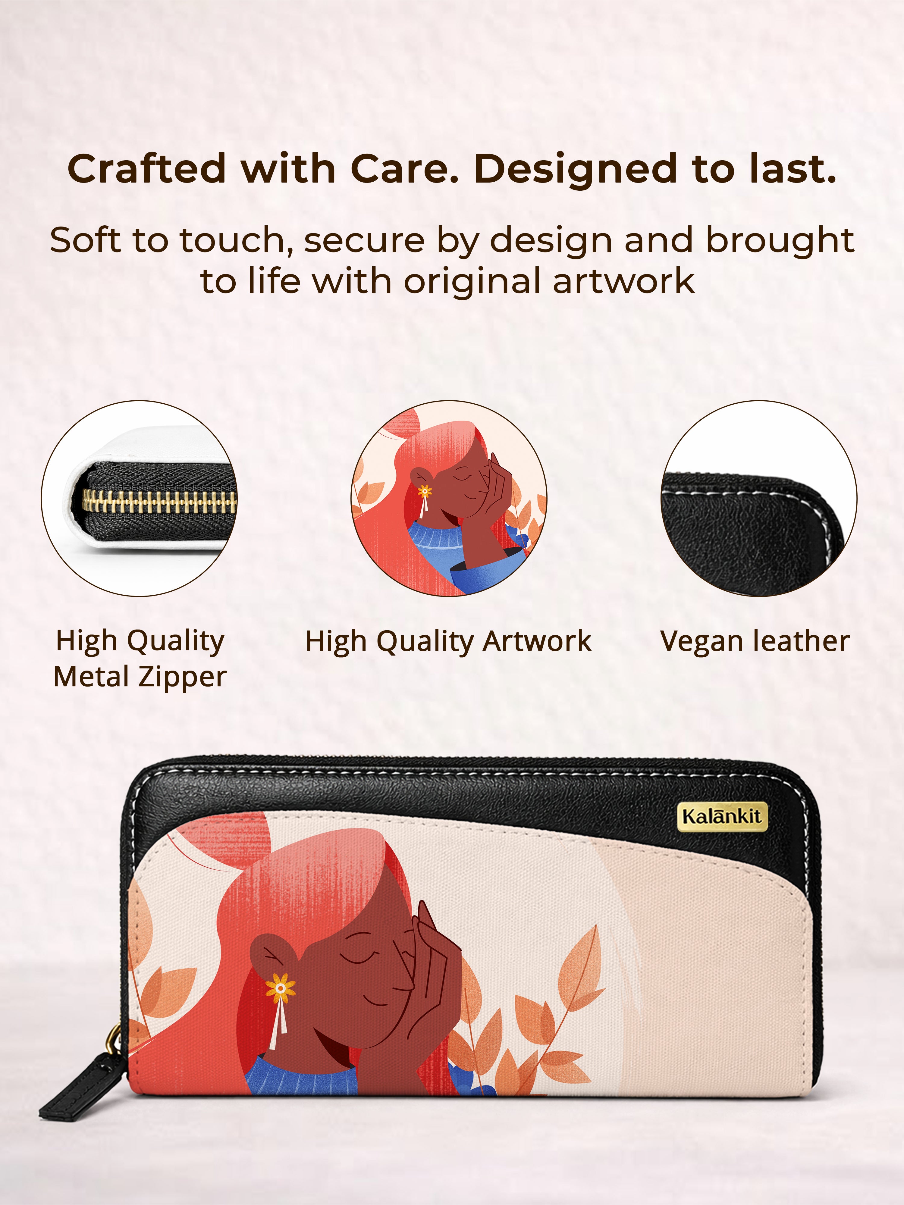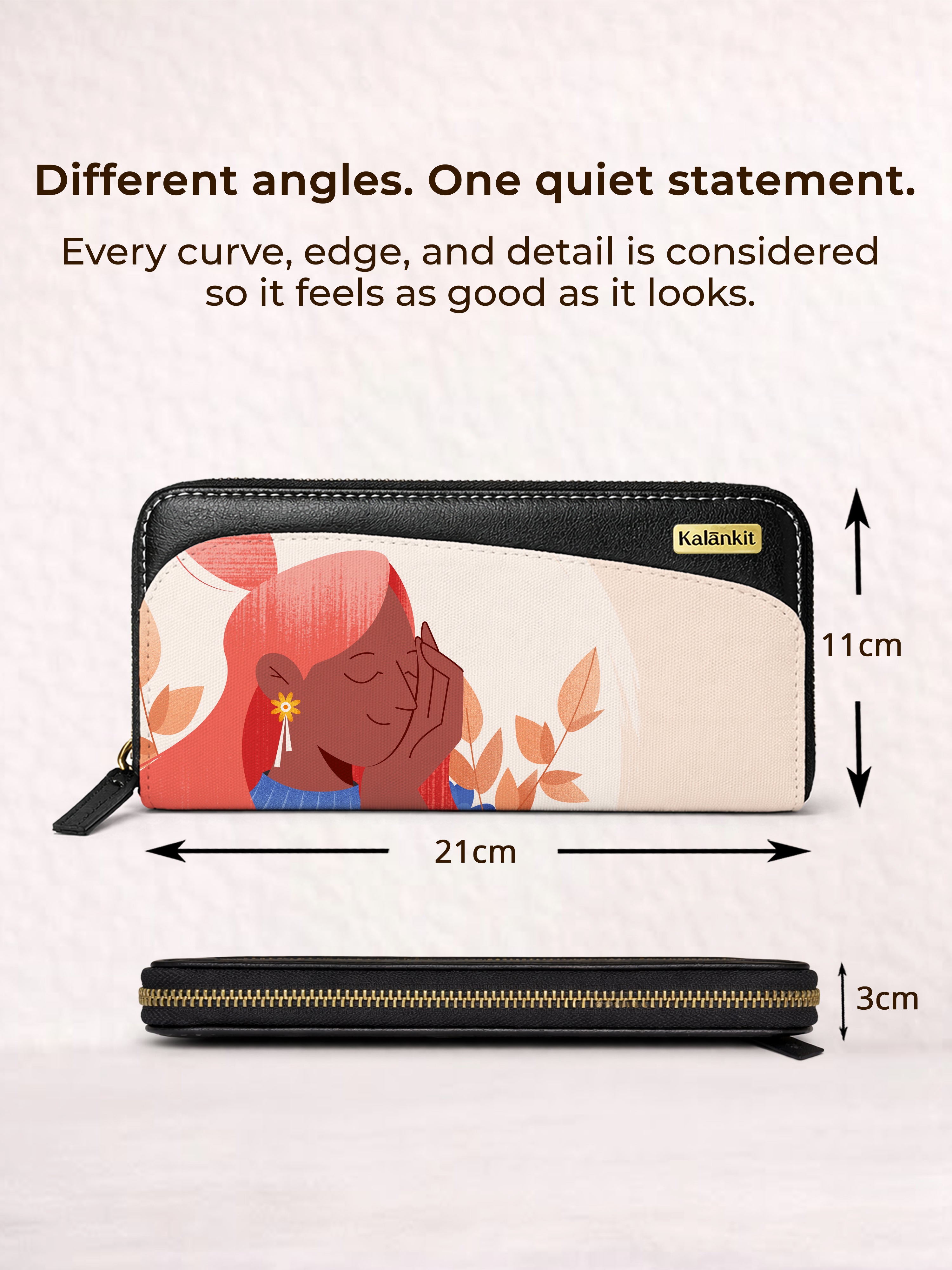 Introducing Kalankit Long Wallet for Women: Thoughtfully designed for women who value everyday function with refined style, this long wallet blends clean aesthetics with smart organization—so your essentials stay effortless to carry and easy to access. Crafted from premium faux leather, this women wallet features a secure zip closure, making it a dependable zipper wallet for women for daily use. Inside, the structured layout includes multiple card slots, spacious cash sections, and a discreet hidden pocket—ideal for keeping cards, cash, and essentials neatly organized. Slim, lightweight, and elegant, this ladies wallet works perfectly as a women purse wallet for office, travel, or everyday errands. Its long, modern silhouette offers more space than compact wallets while remaining comfortable to carry. Designed for women who prefer a wallet that is stylish yet practical, this piece makes a reliable everyday companion.
