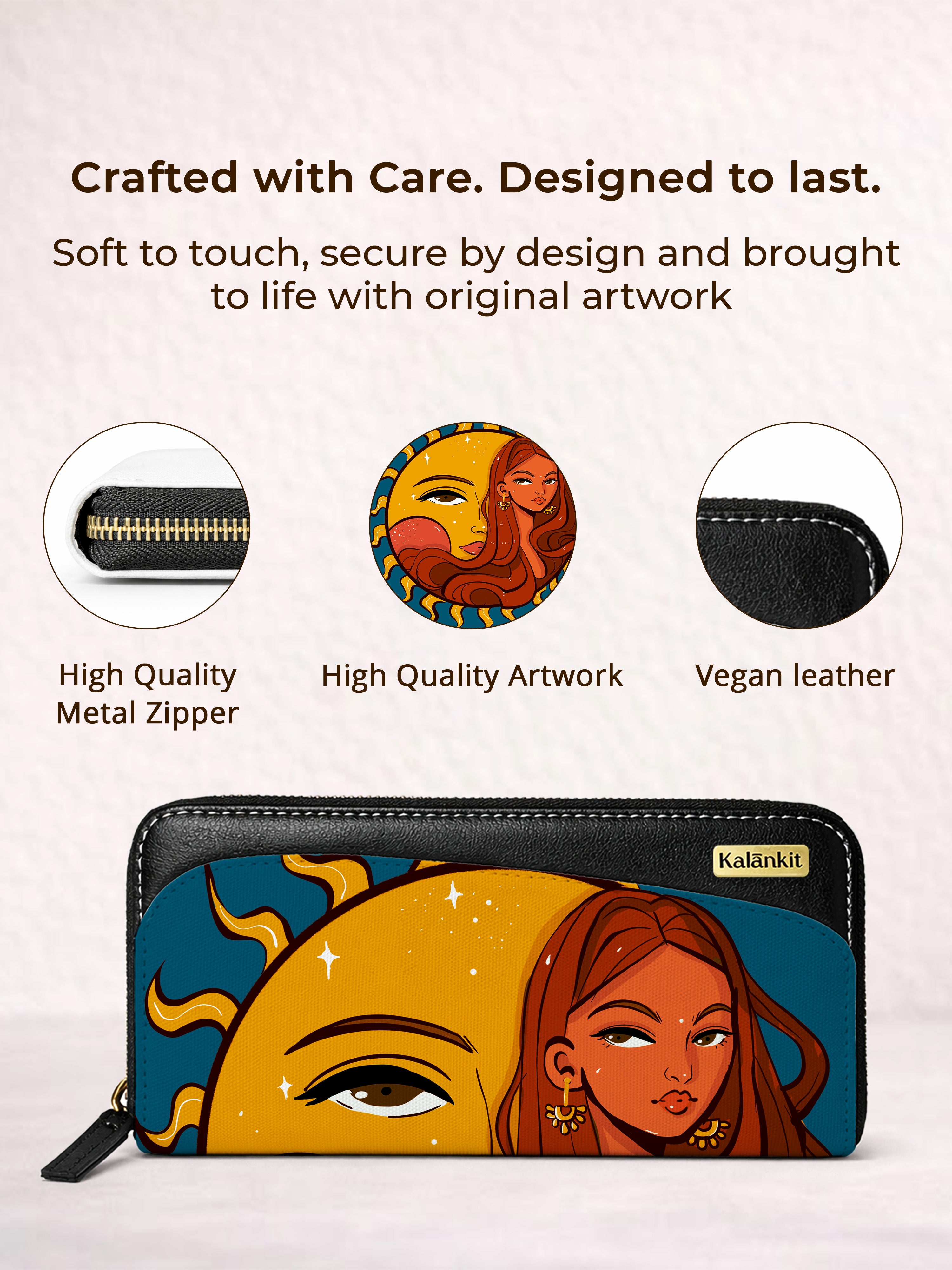 Introducing Kalankit Long Wallet for Women: Thoughtfully designed for women who value everyday function with refined style, this long wallet blends clean aesthetics with smart organization—so your essentials stay effortless to carry and easy to access. Crafted from premium faux leather, this women wallet features a secure zip closure, making it a dependable zipper wallet for women for daily use. Inside, the structured layout includes multiple card slots, spacious cash sections, and a discreet hidden pocket—ideal for keeping cards, cash, and essentials neatly organized. Slim, lightweight, and elegant, this ladies wallet works perfectly as a women purse wallet for office, travel, or everyday errands. Its long, modern silhouette offers more space than compact wallets while remaining comfortable to carry. Designed for women who prefer a wallet that is stylish yet practical, this piece makes a reliable everyday companion.