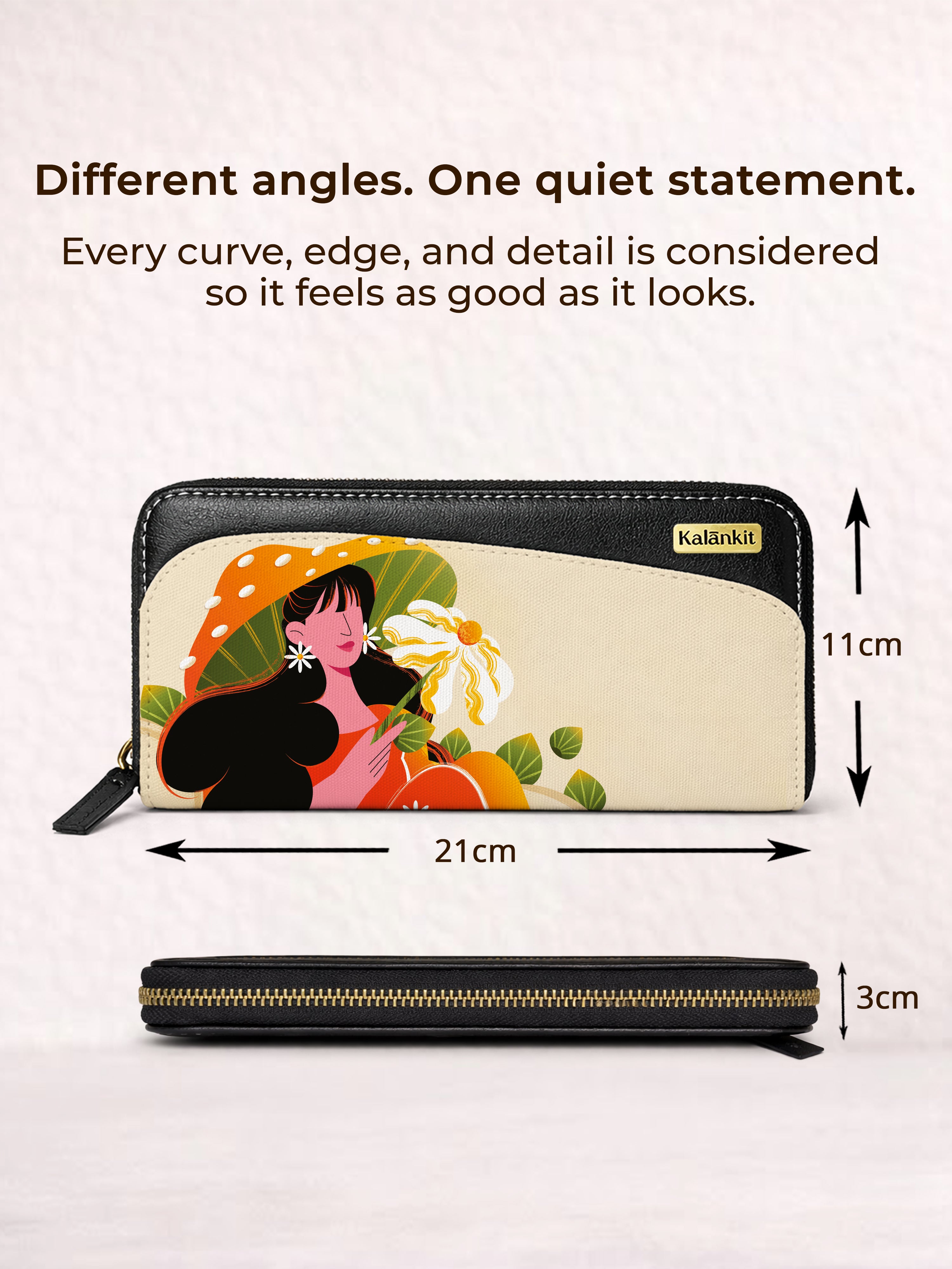 Introducing Kalankit Long Wallet for Women: Thoughtfully designed for women who value everyday function with refined style, this long wallet blends clean aesthetics with smart organization—so your essentials stay effortless to carry and easy to access. Crafted from premium faux leather, this women wallet features a secure zip closure, making it a dependable zipper wallet for women for daily use. Inside, the structured layout includes multiple card slots, spacious cash sections, and a discreet hidden pocket—ideal for keeping cards, cash, and essentials neatly organized. Slim, lightweight, and elegant, this ladies wallet works perfectly as a women purse wallet for office, travel, or everyday errands. Its long, modern silhouette offers more space than compact wallets while remaining comfortable to carry. Designed for women who prefer a wallet that is stylish yet practical, this piece makes a reliable everyday companion.