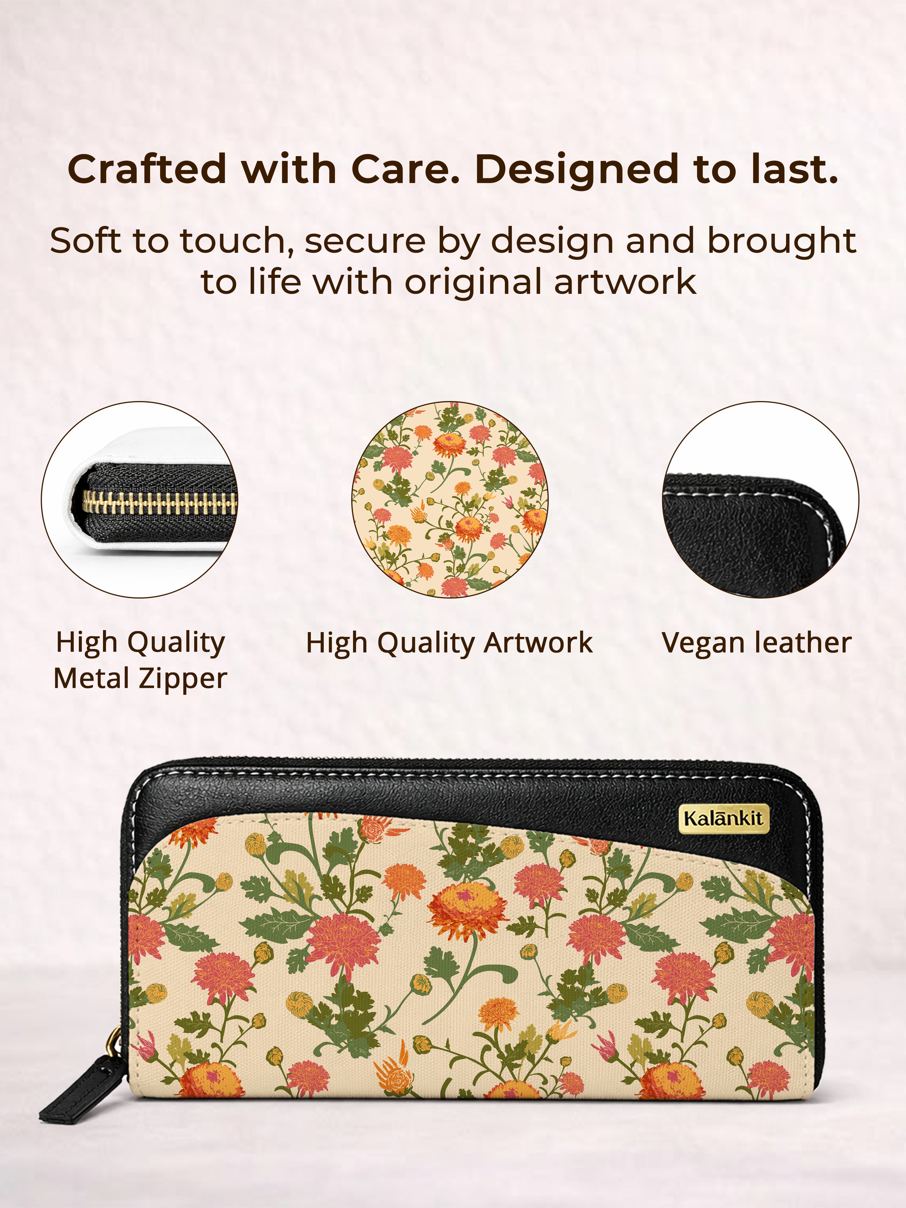 Introducing Kalankit Long Wallet for Women: Thoughtfully designed for women who value everyday function with refined style, this long wallet blends clean aesthetics with smart organization—so your essentials stay effortless to carry and easy to access. Crafted from premium faux leather, this women wallet features a secure zip closure, making it a dependable zipper wallet for women for daily use. Inside, the structured layout includes multiple card slots, spacious cash sections, and a discreet hidden pocket—ideal for keeping cards, cash, and essentials neatly organized. Slim, lightweight, and elegant, this ladies wallet works perfectly as a women purse wallet for office, travel, or everyday errands. Its long, modern silhouette offers more space than compact wallets while remaining comfortable to carry. Designed for women who prefer a wallet that is stylish yet practical, this piece makes a reliable everyday companion.